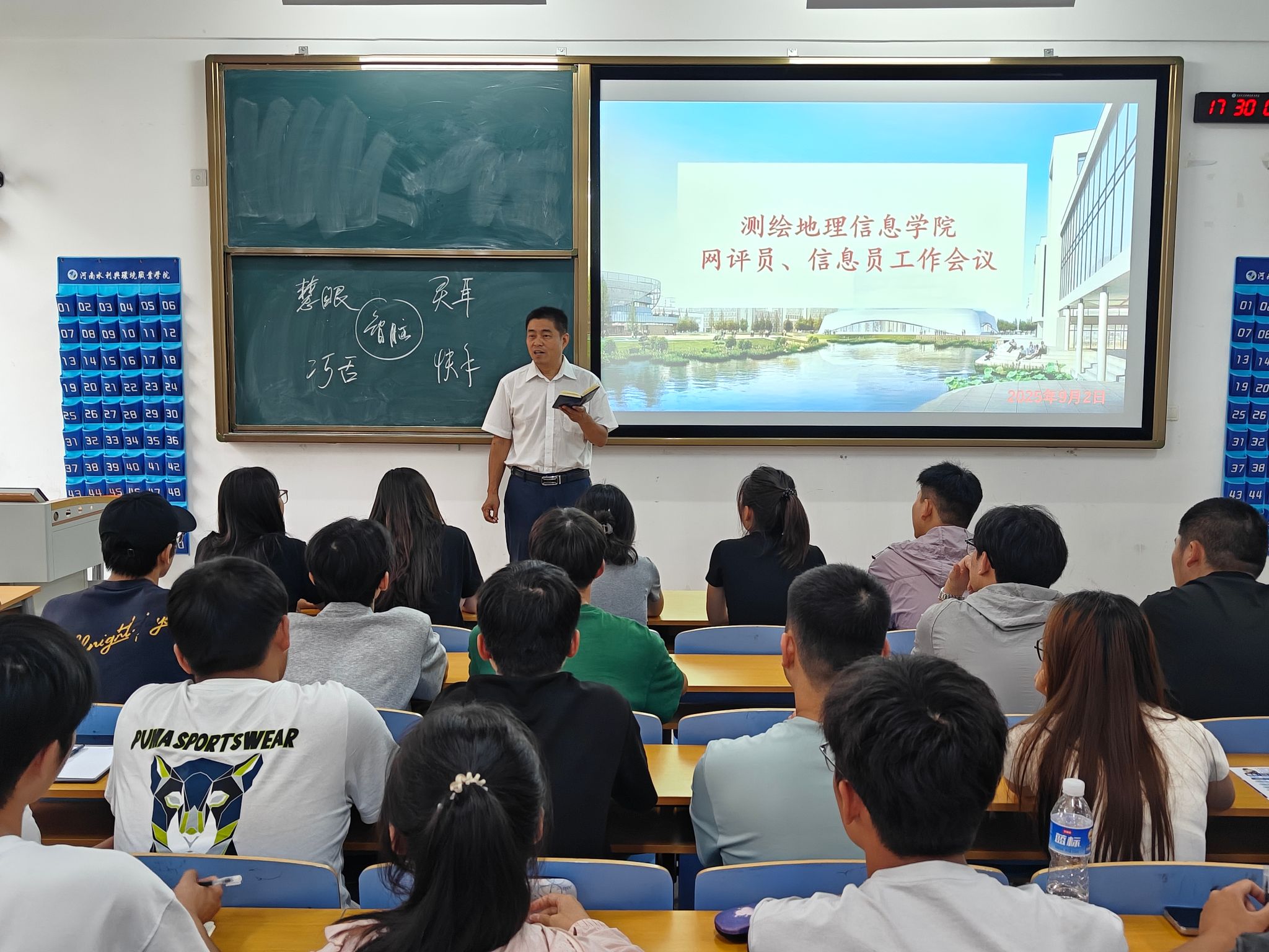 为进一步推动网评员、信息员与学生干部履职尽责,9月2日,测绘地理信息学院召开学生干部大会暨网评员专项工作会议。会议由学院党总支书记钟含主持,全体学生干部、网评员和信息员参加。
