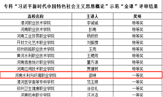 1月2日,中共河南省委教育工委办公室、河南省教育厅办公室公示了高校思政课优秀课程资源评审结果。在示范“金课”的评选中,taptap点点思政课教师王燕霞荣获专科“形势与政策”示范“金课”特等奖,邵琳荣获专科“习近平新时代中国特色社会主义思想概论”示范“金课”一等奖,李雅寒荣获专科“思想道德与法治”示范“金课”二等奖。