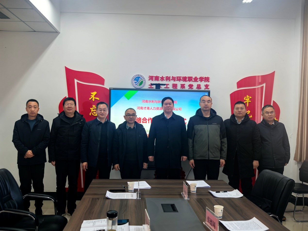 张德周介绍了才港公司的规模、业务主体、发展战略、航空港区企业发展现状等情况。他表示,河南水环学院拥有丰富的教育资源和专业的师资队伍,培养了一大批具有扎实理论和实践技能的优秀人才。公司作为属地知名企业,对标国内一流人力资源企业,不断创新探索人才工作市场化道路,在人力资源领域有着丰富经验和广泛企业资源,希望借此机会深化校企合作,共同打造技能人才发展新高地,推动郑州航空港区职业教育高质量发展。
