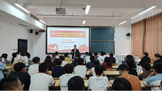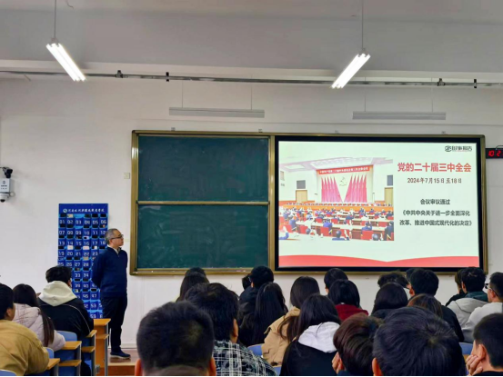 11月19日,副校长包永刚到水利工程系为学生讲授党的二十届三中全会精神专题思政课。
