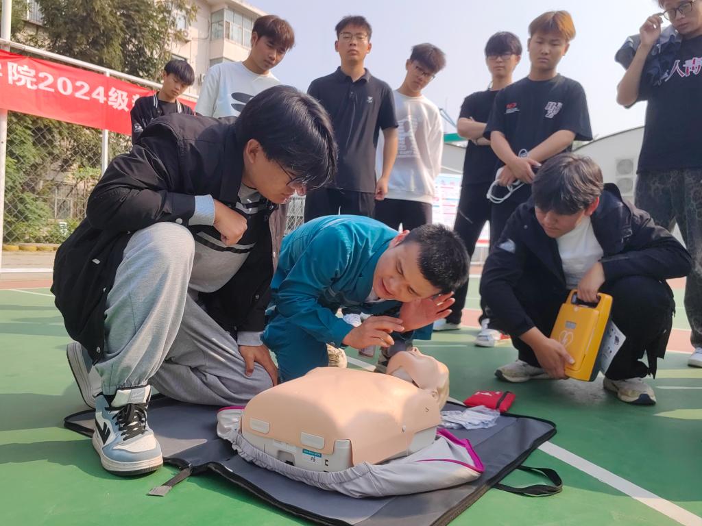 10月15日,医务室邀请郑州市第一人民医院及新郑市人民医院的急诊科专家分别到花园路校区、航空港校区开展急救知识科普与技能培训活动。通过理论讲解、现场实操、经验分享的方式,专家们深入浅出地讲解了心肺复苏(CPR)、自动体外除颤器(AED)、海姆立克急救法等急救知识与技能,增强了新学生自救互救的健康责任意识,提升了学生自救互救能力。