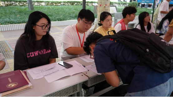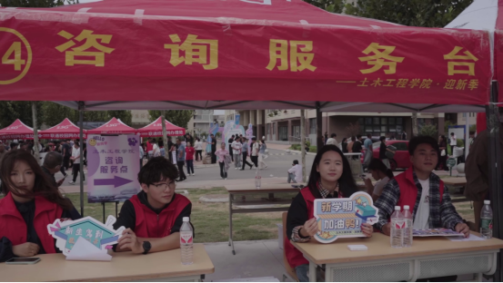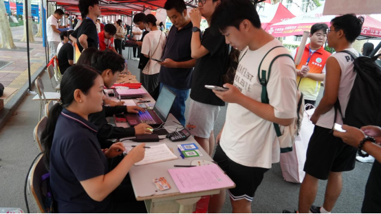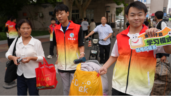 水环为前来报到的新生及家长们