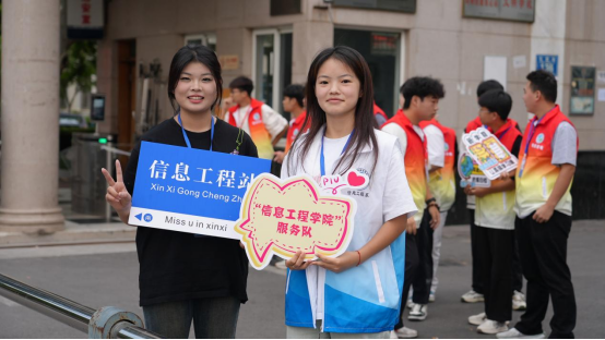 志愿者们身着志愿者马甲面带微笑