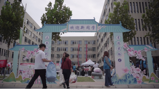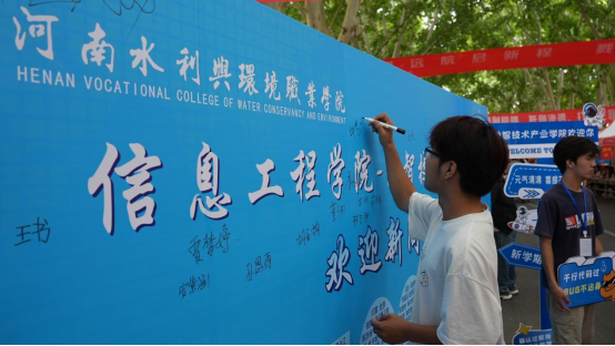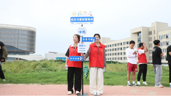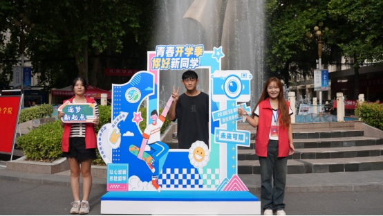 高高竖立的打卡墙,热情洋溢的迎新标语