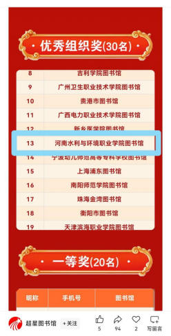 近期,超星移动图书馆公布第三届“贺新春品民俗”知识竞答挑战赛获奖名单,taptap点点图书馆从全国6746家参赛单位中脱颖而出,荣获全国阅读推广“优秀组织奖”。该奖项全国仅30家单位获评,河南省仅有3家,taptap点点作为省内唯一获奖的高职院校,彰显了职业教育院校在文化传承与阅读推广领域的独特竞争力。