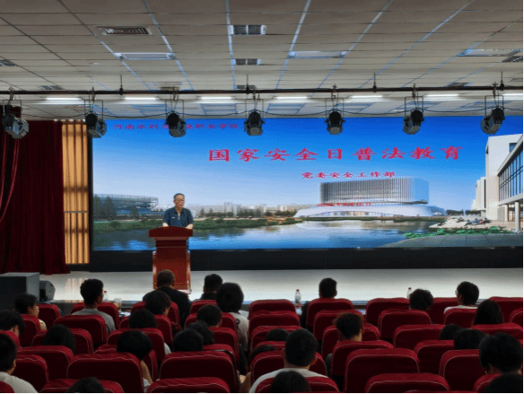 为深入贯彻《中华人民共和国国家安全法》,落实《河南省教育厅河南省司法厅关于开展全省教育系统第四届法治教育宣传周活动的通知》要求,进一步提升师生法治素养,营造安全、和谐的校园环境,4月15日,taptap点点在航空港校区德礼讲堂举办以“增强法治意识,共建平安校园”为主题的国家安全日普法教育活动。活动由党委安全工作部部长汪志华主持,郑州市公安局八千派出所张向卫警官及执法团队应邀担任主讲。