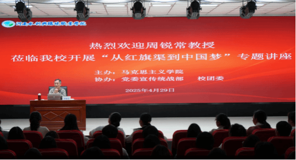 讲座中,周锐常教授以红旗渠与中国梦的内在联系为切入点,深刻阐释了“始于浪漫,继于悲壮,终于辉煌”的精神脉络。他通过详实的历史资料、鲜活的人物故事,以及大量珍贵影像和口述史料,生动再现了上世纪60年代林县人民“引漳入林”的壮举,从勘测设计到开山凿渠,从克服技术难关到战胜自然灾害,全方位诠释了红旗渠建设过程中“自力更生、艰苦创业、团结协作、无私奉献”的精神内核。在分析当代价值时,他特别强调红旗渠精神蕴含的科技创新智慧与集体主义价值观,对新时代青年的重要启示意义。