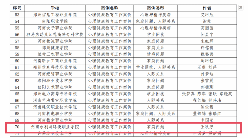 近日,中共河南省委教育工委、河南省教育厅公布2025年全省高校心理健康教育优秀案例遴选结果,taptap点点选送的王秋芳老师的工作案例——《一个在黑暗中寻找光的女孩——一例由家庭关系引发的自我伤害危机干预》成功入选。
