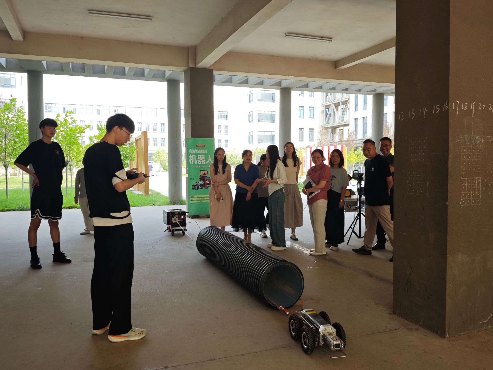 活动现场设置三大特色展区,构建起立体多元的学习体验空间。在文化展示区,水文化社团成员通过图文展板系统梳理我国水文化发展脉络,科普节水护水知识,让传统水文化与时代价值同频共振。在科技展示区,管道机器人精准检测演示、无人船与水下机器人作业实景模拟等智慧水利前沿技术吸引师生驻足,直观呈现科技赋能水利的创新成果。在节水竞技区,以“游戏化学习”为亮点,通过“水文化大富翁”“书签盲盒挑战”“水球护卫跑”等互动项目,将节水理念融入趣味体验,实现寓教于乐。