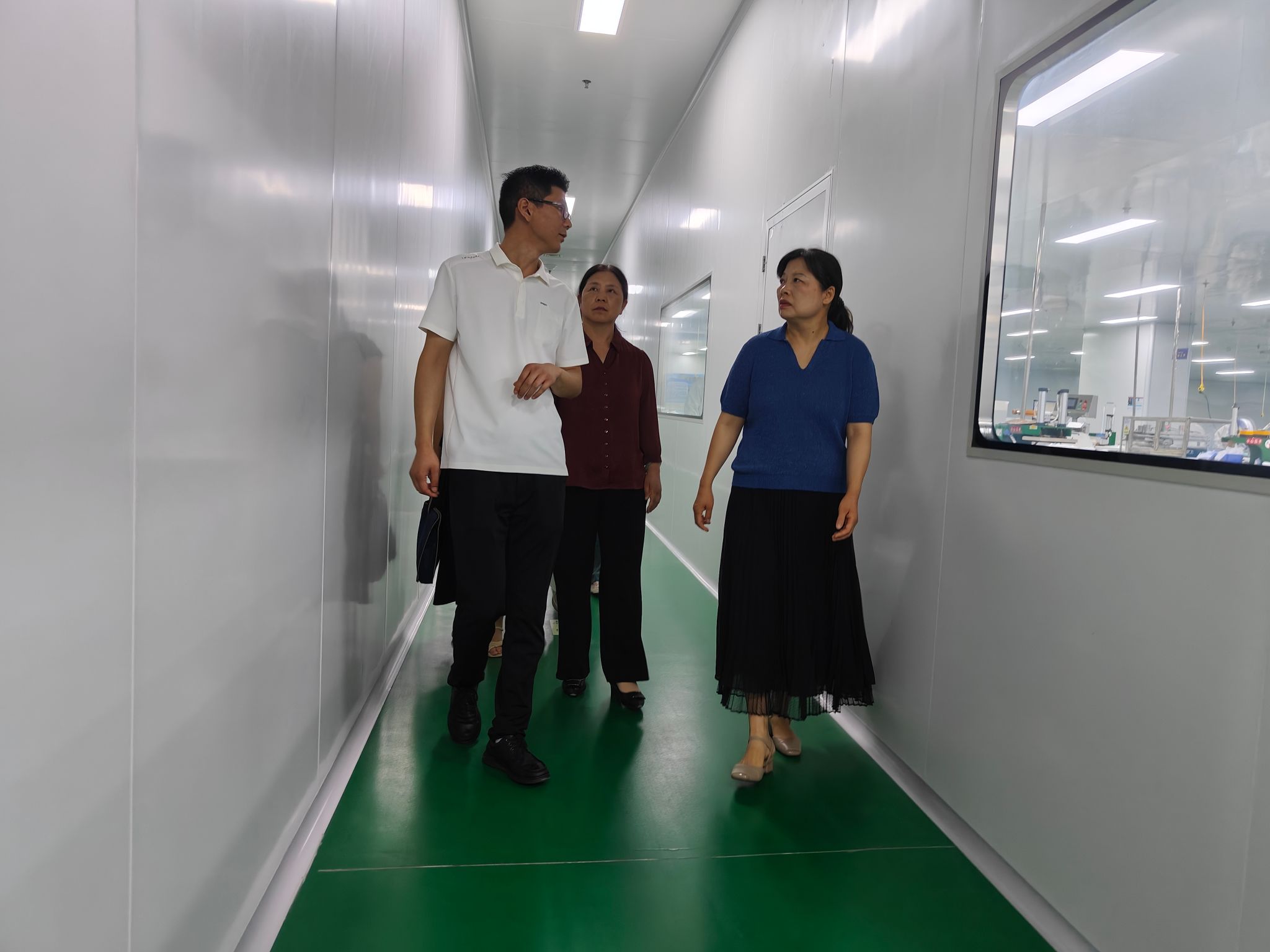 在企业负责人张波陪同下,调研组深入生产车间与生活区,通过观摩通道实地了解医用材料生产线运行流程,重点考察环境检测类专业学生工作实践场景,沉浸式感受企业文化与员工成长环境。