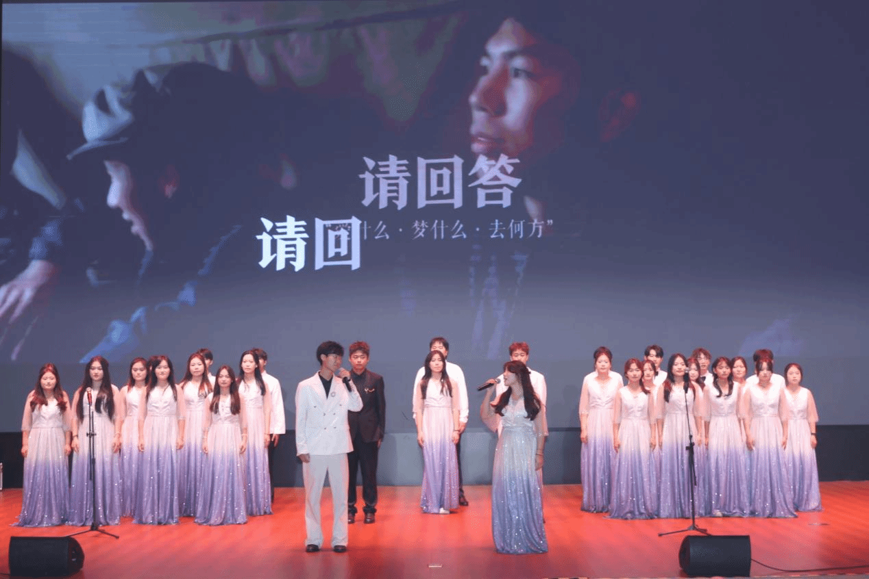 舞蹈《黄河谣》以优美舞姿勾勒黄河磅礴画卷,深挖民族精神内核,引得现场观众心潮澎湃;歌曲《别怕变老》用温暖声线传递对未来的期许,治愈又励志;《小镇姑娘》则以轻快节奏营造轻松氛围,引发全场共情合唱。最终,晚会在校合唱团气势恢宏的《有我》中落下帷幕,歌声里满含新时代青年“强国有我”的坚定信念,将现场气氛推向最高潮。