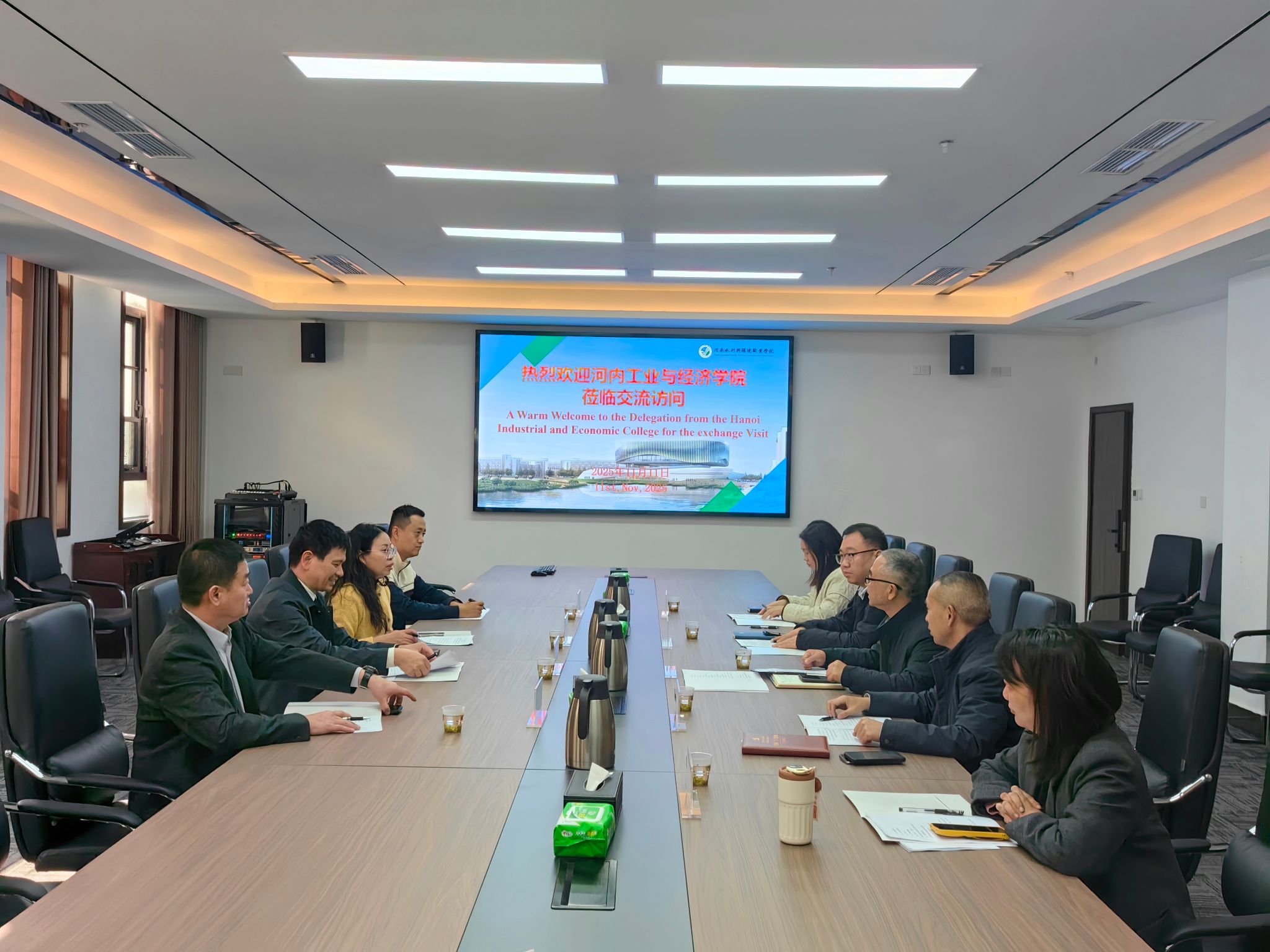 桐中政介绍了越南工业转型期的人才需求现状及该校办学特色,重点提及越南电子信息技术、机电一体化等领域复合型人才缺口突出,希望通过此次访问吸纳中国职业教育先进经验,拓展优质教育资源合作。双方还就办学理念、实训体系建设、核心办学成果等方面展开全面交流,为后续务实合作奠定坚实互信基础。