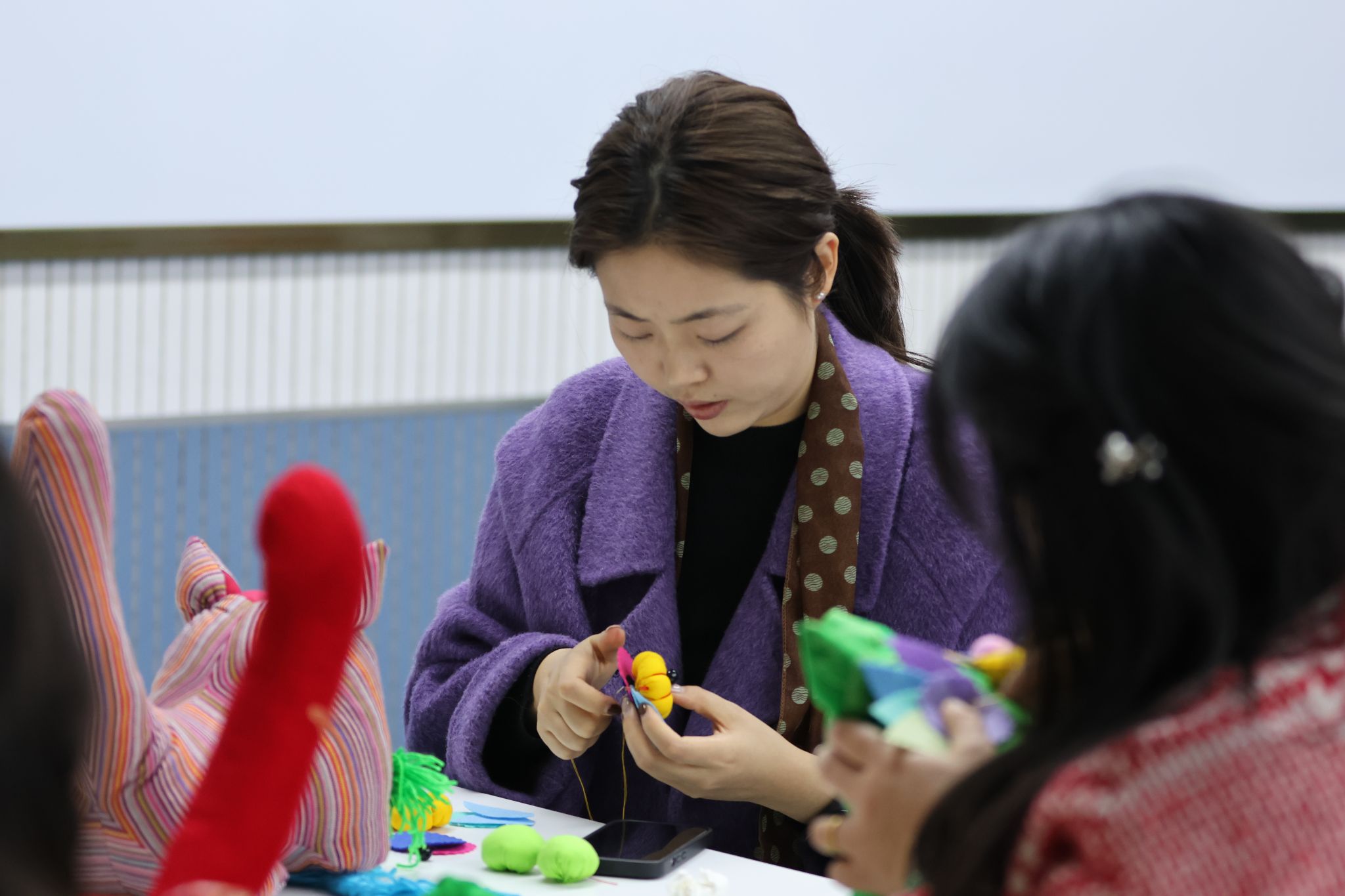 制作现场暖意融融、笑语盈盈。教职工们兴致盎然地拿起布料、针线、棉花等材料,专注勾勒虎耳轮廓、精心设计虎身纹饰、细致填充棉花塑形。大家相互交流技巧、分享创作心得,从生疏针法到熟练操作,一张张普通布料逐渐变成形态各异、憨态可掬的布老虎作品——有的虎头圆胖、虎目有神,有的身披彩纹、威风凛凛,有的点缀流苏、灵动俏皮。近两个小时的创作过程中,大家沉浸式体验手工乐趣,舒缓了工作压力。