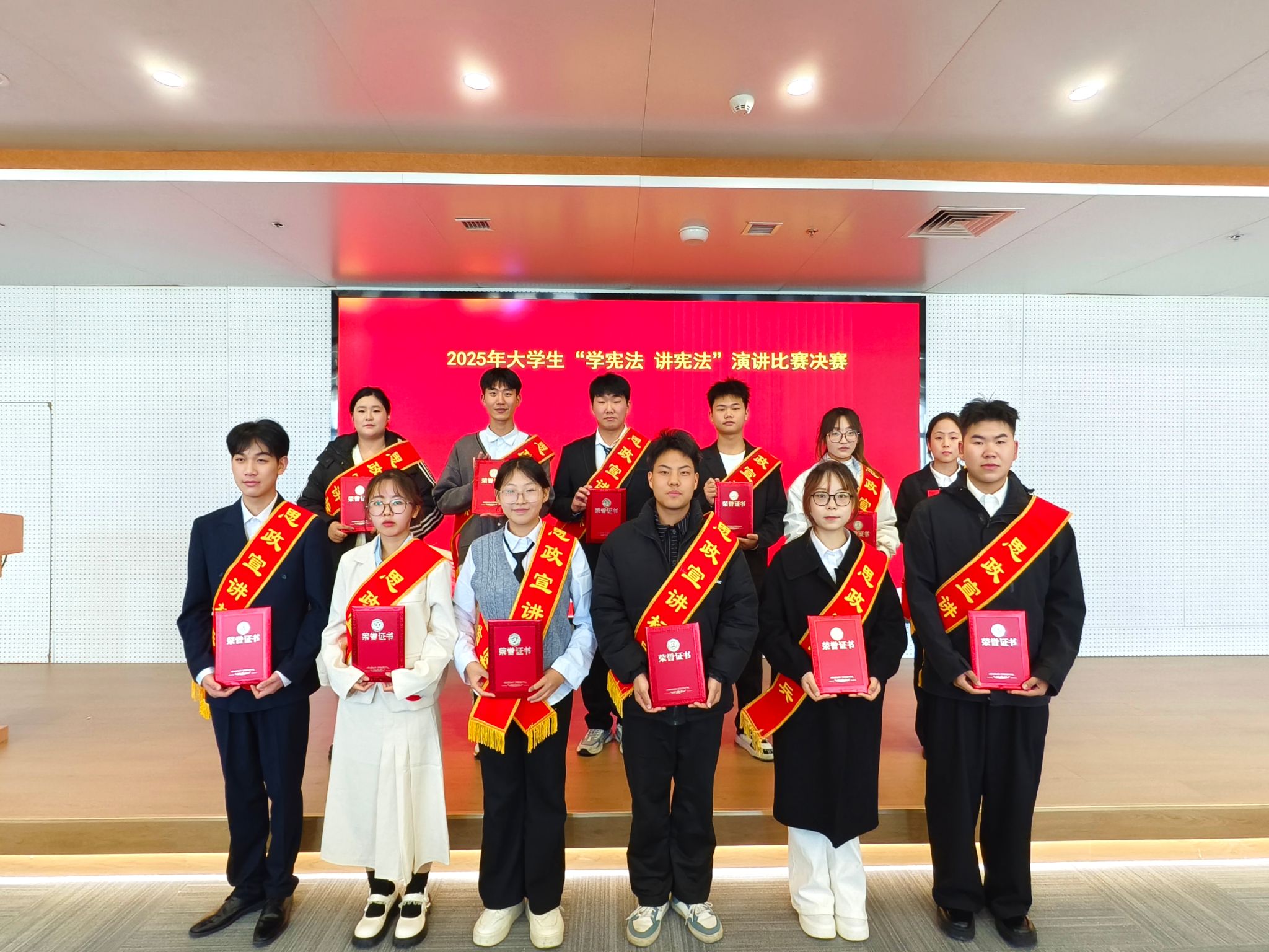 为深入学习贯彻习近平法治思想,推动宪法学习教育走深走实,引导青年学生厚植法治信仰、强化责任担当,11月25日,taptap点点2025年大学生“学宪法 讲宪法”演讲比赛决赛在航空港校区图书馆智慧讲堂隆重举行。马克思主义学院领导班子成员、全体思政课教师及参赛选手齐聚现场,共赴这场法治与青春的思想盛宴。
