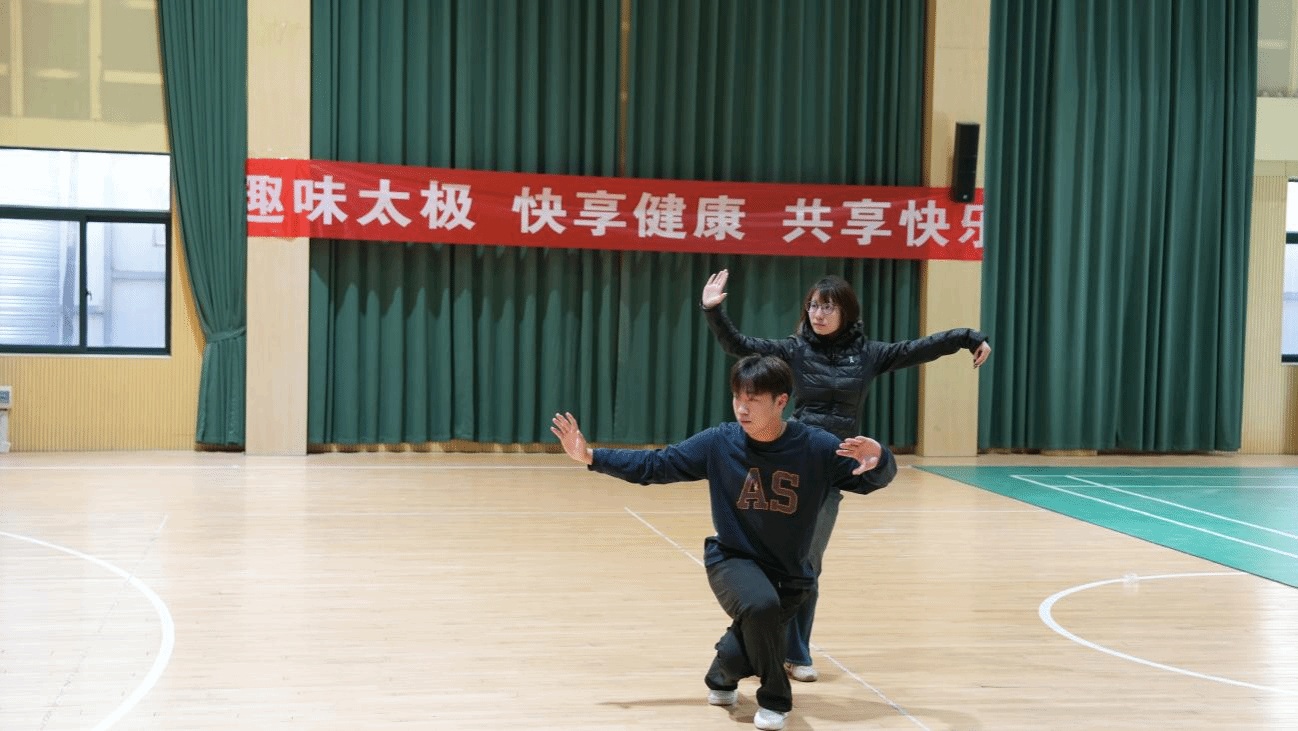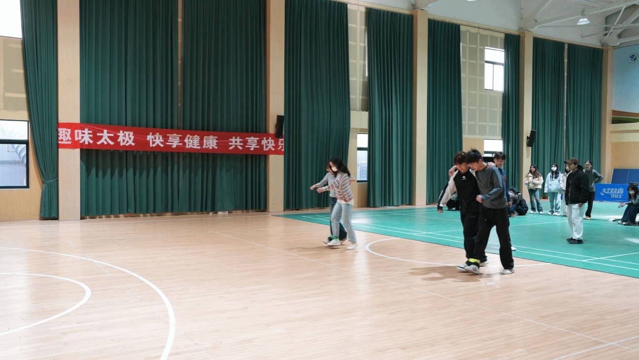 展示环节结束后,趣味十足的太极互动游戏点燃现场氛围。“两人一足”考验着学子们的平衡感与协作力,大家在轻松对抗中感受“以柔克刚”的精髓;“招式猜猜乐”通过趣味问答形式,让大家在欢笑中巩固太极招式知识,现场氛围热烈而融洽。魏义军主动参与其中,与学生们一同体验游戏乐趣,不时交流互动,拉近了与学子们的距离。