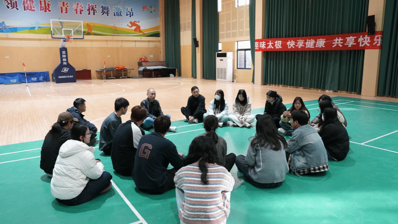 活动尾声,魏义军与学生们围坐一圈,亲切交流。他充分肯定了太极武术社团在传承传统文化、丰富校园生活方面的积极作用,并着重强调了体育锻炼和体育课的重要意义。他指出,体育不仅能强健体魄,更能锤炼意志、培养团队精神,希望同学们能坚持体育锻炼,将太极文化中 “坚韧不拔、谦和包容” 的精神融入学习生活,全面提升综合素质。同时,他鼓励社团继续深耕传统武术文化传播,打造特色校园文化品牌。
