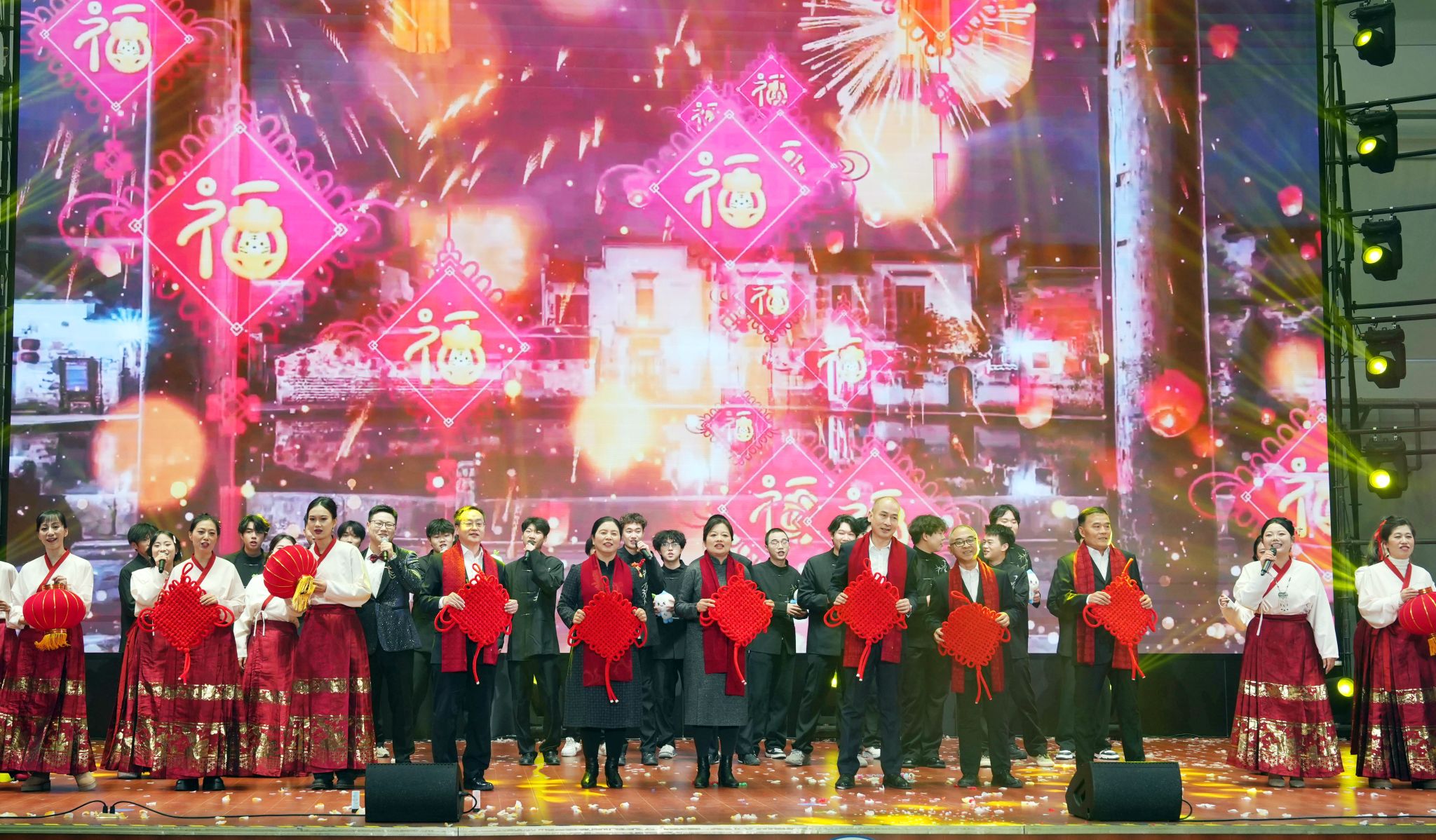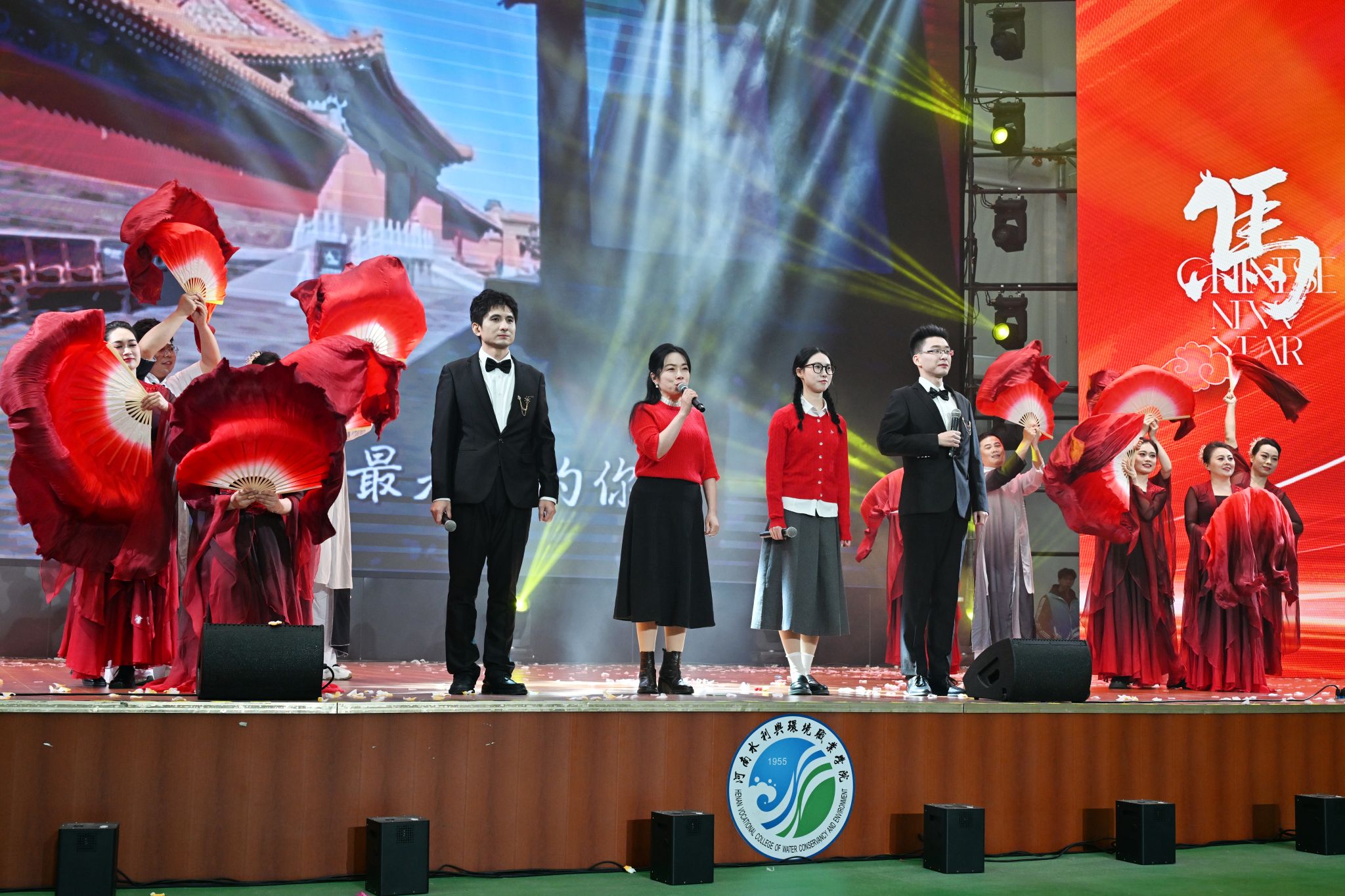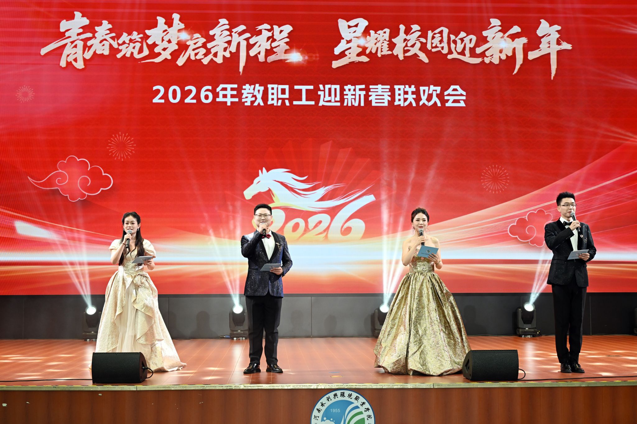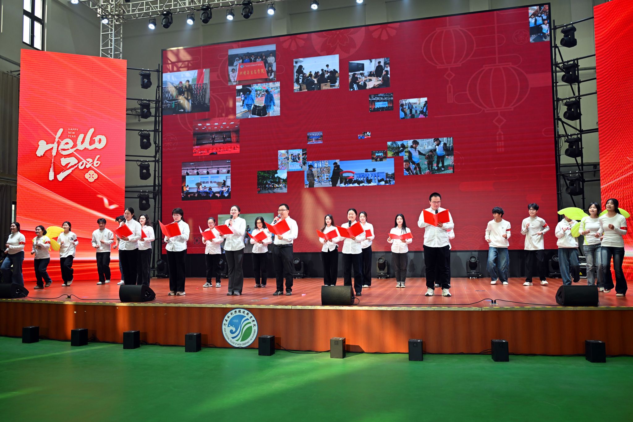 联欢会在歌伴舞《水润华章》的悠扬旋律中惊艳开场。舞者轻盈的舞姿与歌手真挚的演唱完美融合,瞬间点燃全场热情,将氛围带入活力满满的迎新时刻。