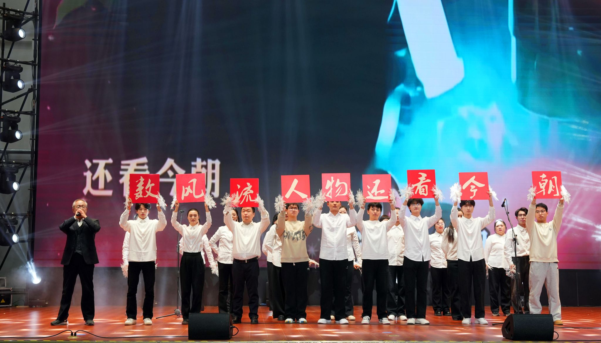 经典豫剧选段《沁园春·雪》震撼登场,演员们字正腔圆、韵味醇厚,以精湛唱功复刻峥嵘岁月,带领观众沉浸式感受经典魅力,余韵悠长。朗诵节目同样看点十足:《我爱上课》以真挚声线回溯青春课堂的温暖记忆,勾勒校园时光美好画卷;《大写的中国》语调铿锵、情感饱满,礼赞中华文化源远流长与博大精深,字字饱含家国情怀,句句传递赤子之心。