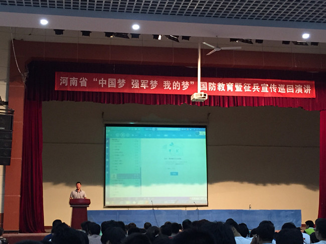 6月2日晚7:00,为加强全民国防教育,配合开展征兵宣传,激发广大青年参军热情。根据学院工作计划安排,在我院大礼堂举行了“河南省‘中国梦 强军梦 我的梦’国防教育暨征兵宣传巡回演讲”。省军区政治部国防教育办公室的各位讲师,为我院广大学生倾情讲述了自己参军入伍报效祖国的感触和经历,使学生们对携笔从戎、投身军营心向往之。时长1小时的演讲博得场下阵阵掌声,最后在与会同学们的激动和感动中演讲圆满结束。