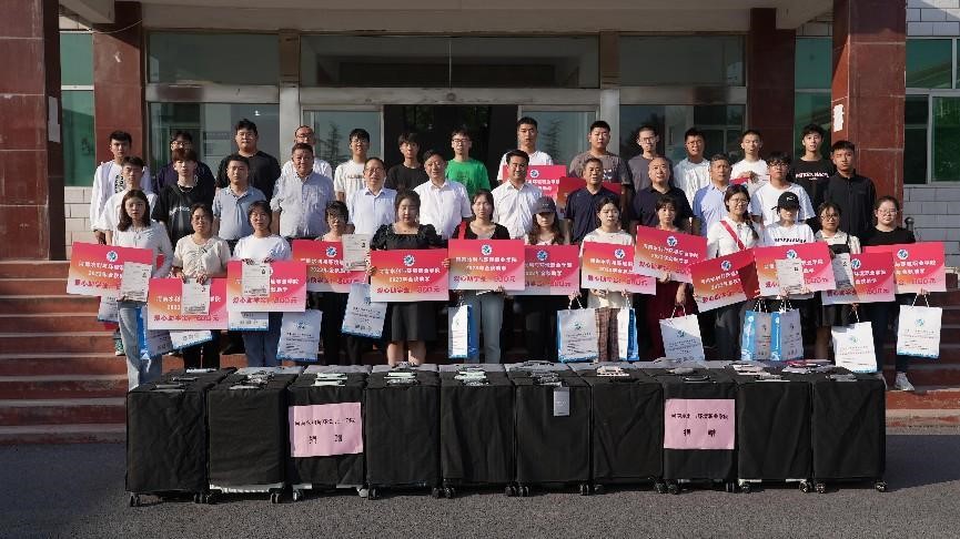 仪式上,校地双方共同为受助学生颁发录取通知书、助学金和捐赠的生活用品,并与新同学合影留念。