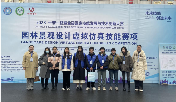 参赛团队成绩斐然,2023年,先后代表学校参加了河南省高等职业院校技能大赛、中华人民共和国第二届职业技能大赛(世赛)河南选拔赛,斩获团体二等奖2项。在此次新增的“一带一路”暨金砖国家技能发展与技术创新大赛园林景观设计虚拟仿真技能赛项中,首赛即获得一等奖和二等奖,展现了强劲实力,实现了成绩突破。成绩的取得,离不开学校领导对专业技能竞赛的关怀支持,离不开指导教师与参赛选手的艰辛付出。成绩只是起点,创新和突破永无止境,环境工程系园林专业团队将以更加饱满和昂扬的精神投入到新的学习和工作中,披荆斩棘,拼搏不止,取得更好的成绩。