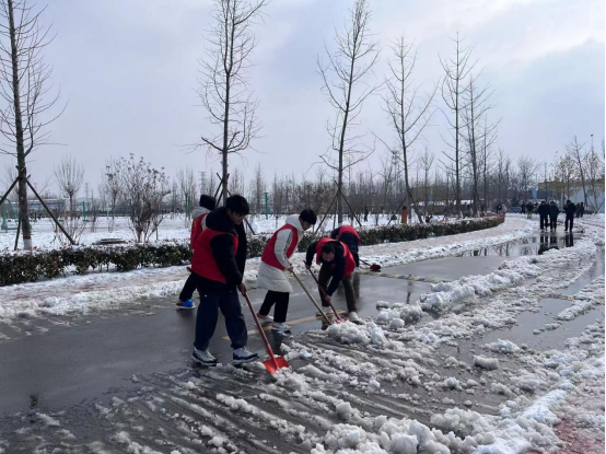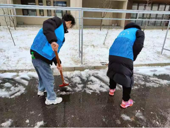 扫雪除冰活动既是应对冰雪天气的有效举措,也是taptap点点师生参与劳动、热心奉献的重要时机。在扫雪除冰过程中,拿着铁锹扫把、穿着红黄蓝马甲的志愿者和老师们成为雪地里一道靓丽的风景线。大家顶着寒风以最快的速度将积雪清理干净,一条条堆满厚厚积雪的道路变身为方便行走的“安全通道”。