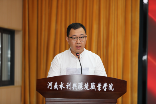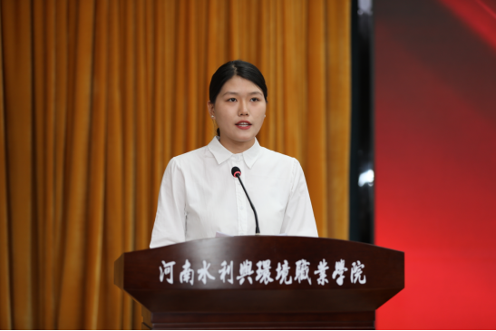 教师代表环境工程系主任张剑在发言中表示,希望同学们始终秉承校训、弘扬校风,做到勤于学习、善于思考、强技成才,为中华民族伟大复兴贡献青春力量。