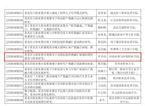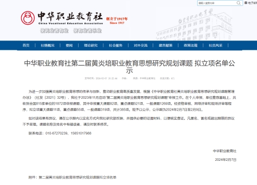 据悉,第二届黄炎培职业教育思想研究规划课题共收到全国815家单位的1872项申报课题,共计立项385项,其中河南省立项重点课题3项、一般课题9项。