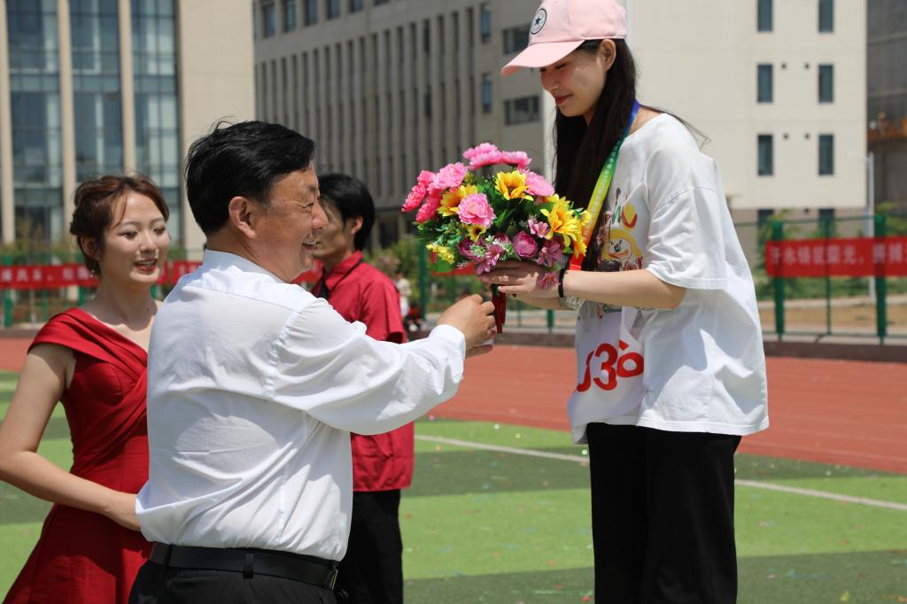 致辞中表示,在为期两天的激烈角逐中,运动员们以饱满的热情、昂扬的斗志,在赛场上敢于拼搏、勇于进取、善于合作、争创佳绩,用汗水和努力谱写了一曲曲动人的乐章,展现了新时代水环学生的风采,营造了良好的校园体育文化氛围。希望同学们继续发扬团结协作、拼搏进取的精神,以更加昂扬的斗志和饱满的热情,投入到学习和生活中去。学校将坚持加强和改进学校体育工作,不断提高学生身体素质,推动体育教学质量提升,争创工作品牌,高质量建设现代化水环学院。
