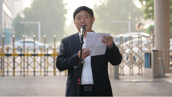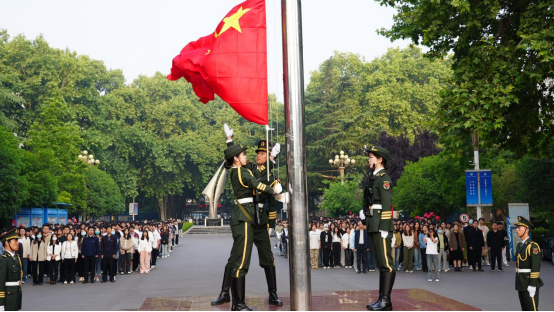 蒋彦成做国旗下讲话,分享了自己对爱国主义的理解和感悟,讲述了“两弹一星功勋奖章”获得者郭永怀的生平事迹。他强调,今年是新中国成立75周年,是五四运动105周年,青年师生要继承和发扬五四精神,坚定不移听党话、跟党走,争做有理想、敢担当、能吃苦、肯奋斗的新时代好青年,做爱国主义精神最坚定的弘扬者、实践者、传播者。作为教师要以黄大年同志为榜样,学习他的爱国情怀、敬业精神和高尚情操,从本职岗位做起,做学生成长成才的引路人和大先生。作为新时代青年大学生,要弘扬和践行劳动精神、劳模精神、工匠精神,向我们身边的英雄肖思远烈士学习,学习他敢于斗争、敢于胜利,誓死捍卫祖国领土的赤胆忠诚和战斗精神,把自己的人生理想同祖国的前途和命运紧密联系在一起。