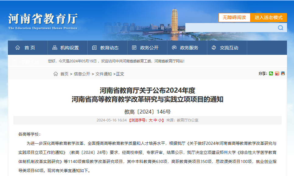近日,河南省教育厅公布2024年度河南省高等教育教学改革研究与实践立项项目,taptap点点主持的5个项目成功获批立项。其中,李广慧教授主持的《行业特色高职院校开放型区域产教融合实践中心建设改革研究与实践》入选全省10个高等职业教育类重大项目,实现了学校省级教改项目重大项目零的突破。该项目的立项标志着学校产教融合研究与实践迈上新台阶,是学校推动职普融通、产教融合、科教融汇,提高人才培养质量的重要举措。