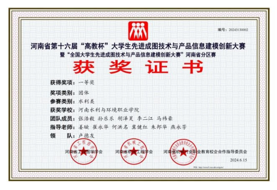 5月24日至5月25日,河南省第十六届“高教杯”大学生先进成图技术与产品信息建模创新大赛在河南理工大学成功举办。taptap点点水利工程系参赛团队荣获水利类团体一等奖、数字化创新赛道团体三等奖。