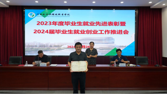 会上,蒋彦成宣读了《关于表彰2023年度毕业生就业工作先进单位和先进个人的决定》,与会领导为获奖单位和个人颁发荣誉证书。
