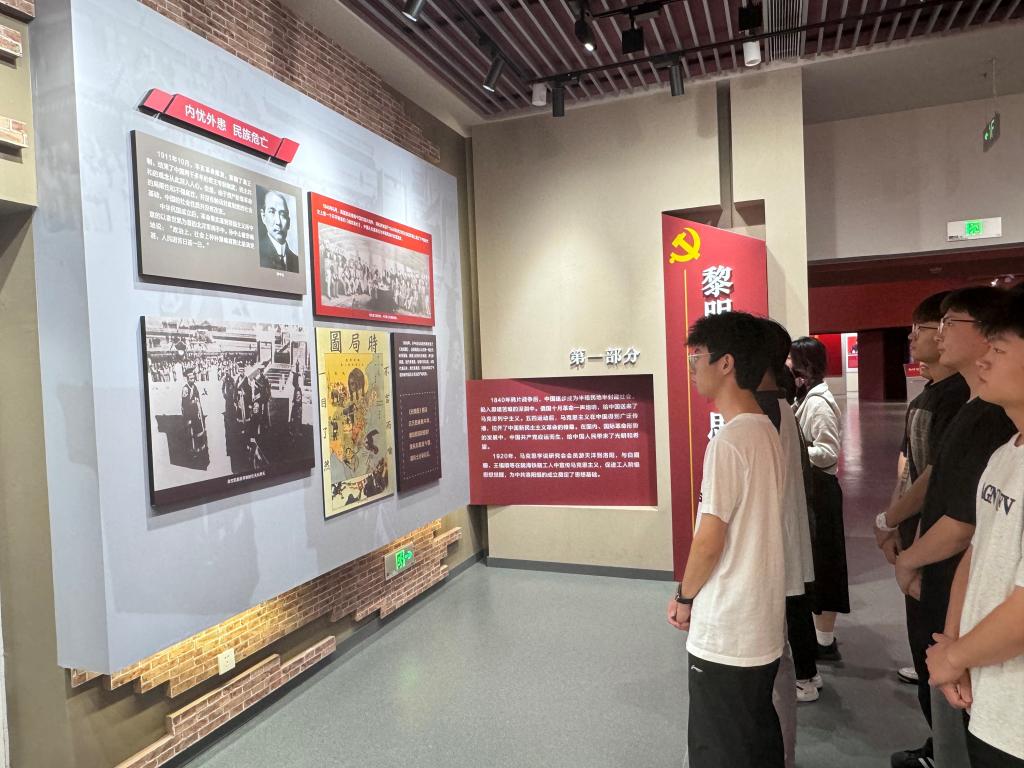 第一站,大家前往河南第一个党组织——中共洛阳组诞生地纪念馆进行现场教学。在纪念馆内,同学们依序参观了“黎明曙光、思想觉醒”“工运怒涛、陇海风暴”“初心起航、烛照前行”“薪火相传、铸就辉煌”四个展区。面对一幅幅珍贵的历史图片和一件件沧桑的实物,他们驻足凝视,并通过讲解员的讲解、观阅文献资料等,共同回顾了那段波澜壮阔的革命岁月,深入了解了中共洛阳组成立前后的革命历史与光辉历程。
