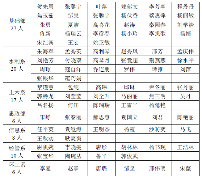 教室安排:基础部、水利系在南教103,其他各系部在南教104