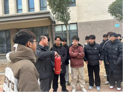 赵国安讲解了学校的消防预警系统和消防整体布局,强调了宿舍内用火、用电的安全规范,普及了校园日常防火措施、初期火灾扑救方法以及火灾逃生技巧等关键知识。