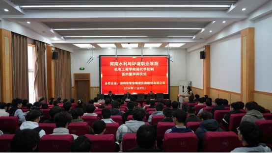 2024年11月22日,机电工程系在北教三阶举行了智信现代学徒制签约暨拜师仪式。机电工程系党总支书记王建军,系主任王利卿、副主任李戈,深圳市智信精密仪器股份有限公司市场业务中心华北区市场总监谢文鹏,企业导师和系师生代表参加。仪式由李戈主持。