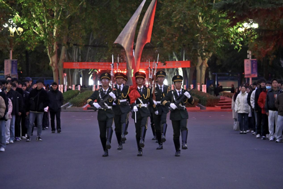 11月18日,信息工程系举行升国旗仪式,系党总支书记岳学超、全体学管老师和2023级在校学生参加。