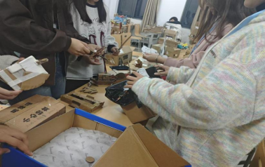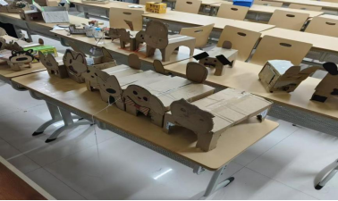 在“双十一”购物节后,快递纸箱大量堆积,这些纸箱大多采用瓦楞纸制作,具有良好的韧性和承重能力,非常适合回收再利用。活动中,同学们积极参与,通过裁剪、粘连等创作方式,将这些废弃材料转化为有趣且具有实用性的装饰件,变废为宝。