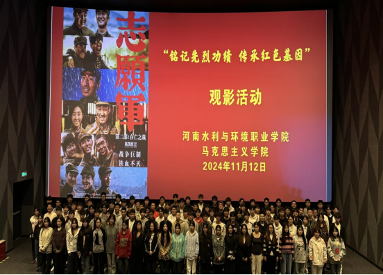 为铭记先烈功绩,传承红色基因,11月12日,马克思主义学院组织思政课教师、思政学习标兵、新生代表等120人集体观看红色影片《志愿军:存亡之战》。