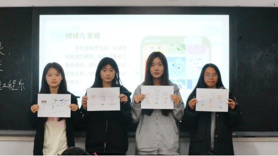 活动设置“天然绘画”“情绪九宫格”“瓶子里的秋天”“神秘面具”“趣味运动会”等项目。“天然绘画”通过赋予落叶以新的生命力,让同学们感受浓浓秋意,拓展生命的意义;“情绪九宫格”通过绘画的形式,帮助同学们整合内心矛盾,获得内在的和谐与稳定;“瓶子里的秋天”以自然为载体,用体验性与探究性的方式,让同学们亲近自然,感受自然之美,提升幸福感;“神秘面具”在绘画过程中帮助同学们正视内心,完成自我心灵的探索;“趣味运动会”以丰富多彩的团体活动,让同学们体验合作的乐趣,培养积极的心态和坚强的意志品质。