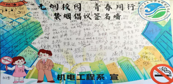 为培养学生健康的生活方式和行为习惯,营造文明美丽的校园环境,11月6日,机电工程系组织开展“无烟校园,青春同行”禁烟控烟活动。