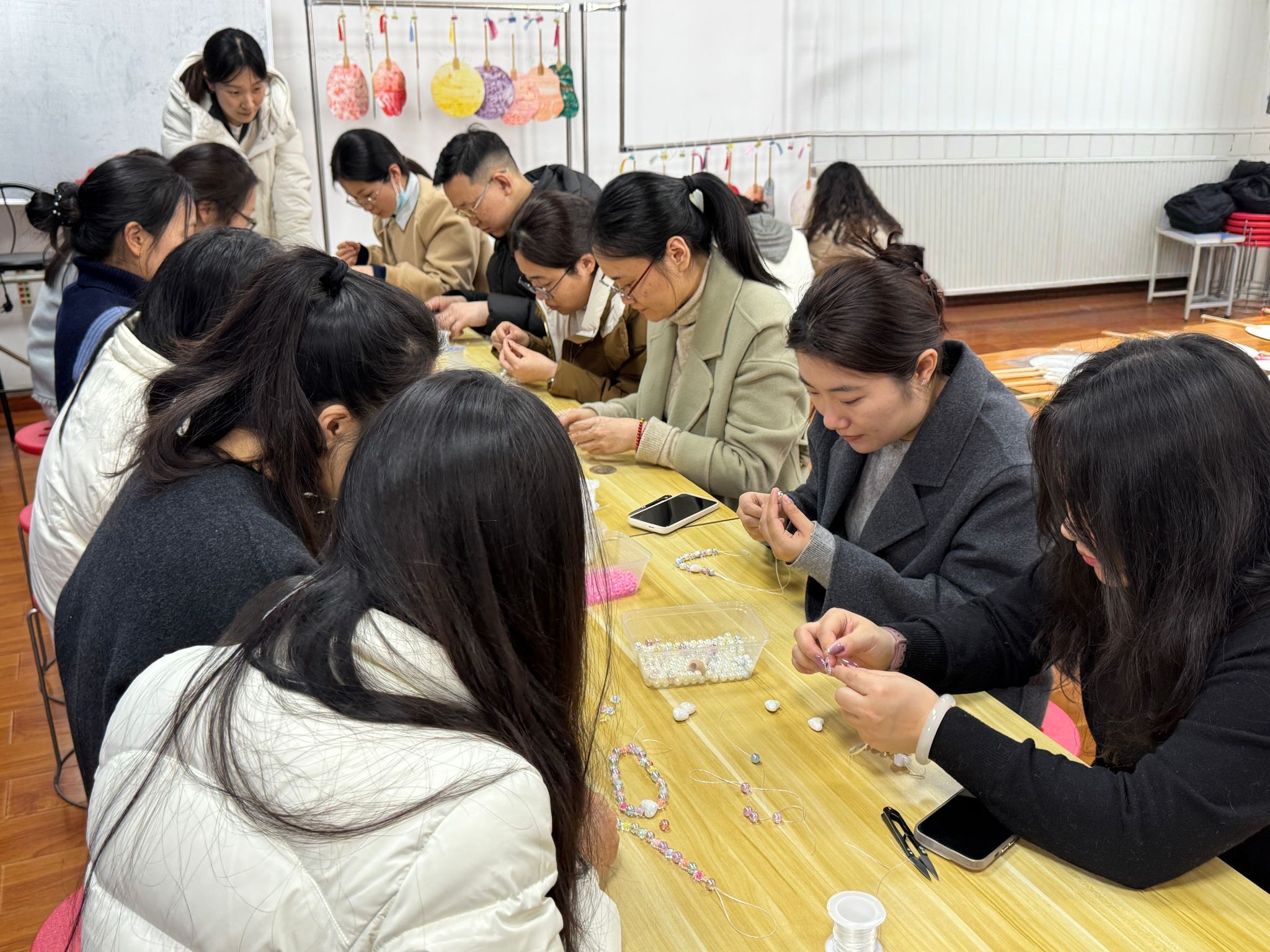 此次活动涵盖“党建引领美好生活,巾帼绽放幸福笑容”主题活动与“腕间芳华,魅力三八”活动。在“党建引领美好生活,巾帼绽放幸福笑容”活动中,老师们投入漆扇与串珠制作。滴漆入水、勾画纹路,一把把精美漆扇诞生;选珠、打结,一个个别致串珠饰品呈现。“腕间芳华,魅力三八”活动现场,同学们精心挑选串珠、串绳及小挂件,凭借创意和审美手工制作手串,现场满是奇思妙想。活动里,师生互动交流、分享经验,共同创作,氛围其乐融融。