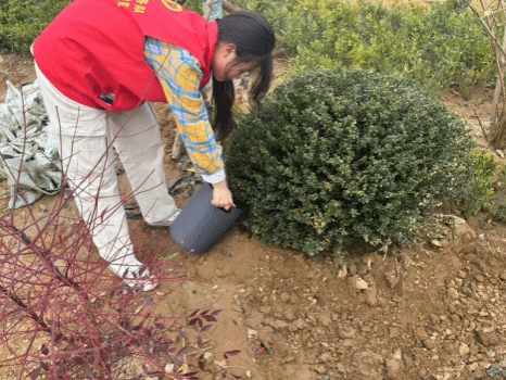 活动当日,志愿者们有序领取树苗、铁锹、水桶等工具后,前往校园指定区域。大家分工明确、配合默契,有的挥锹挖坑,有的扶苗栽种,有的提桶浇水,现场氛围和谐。在志愿者们的共同努力下,校园新添一片片新绿,焕发出勃勃生机。