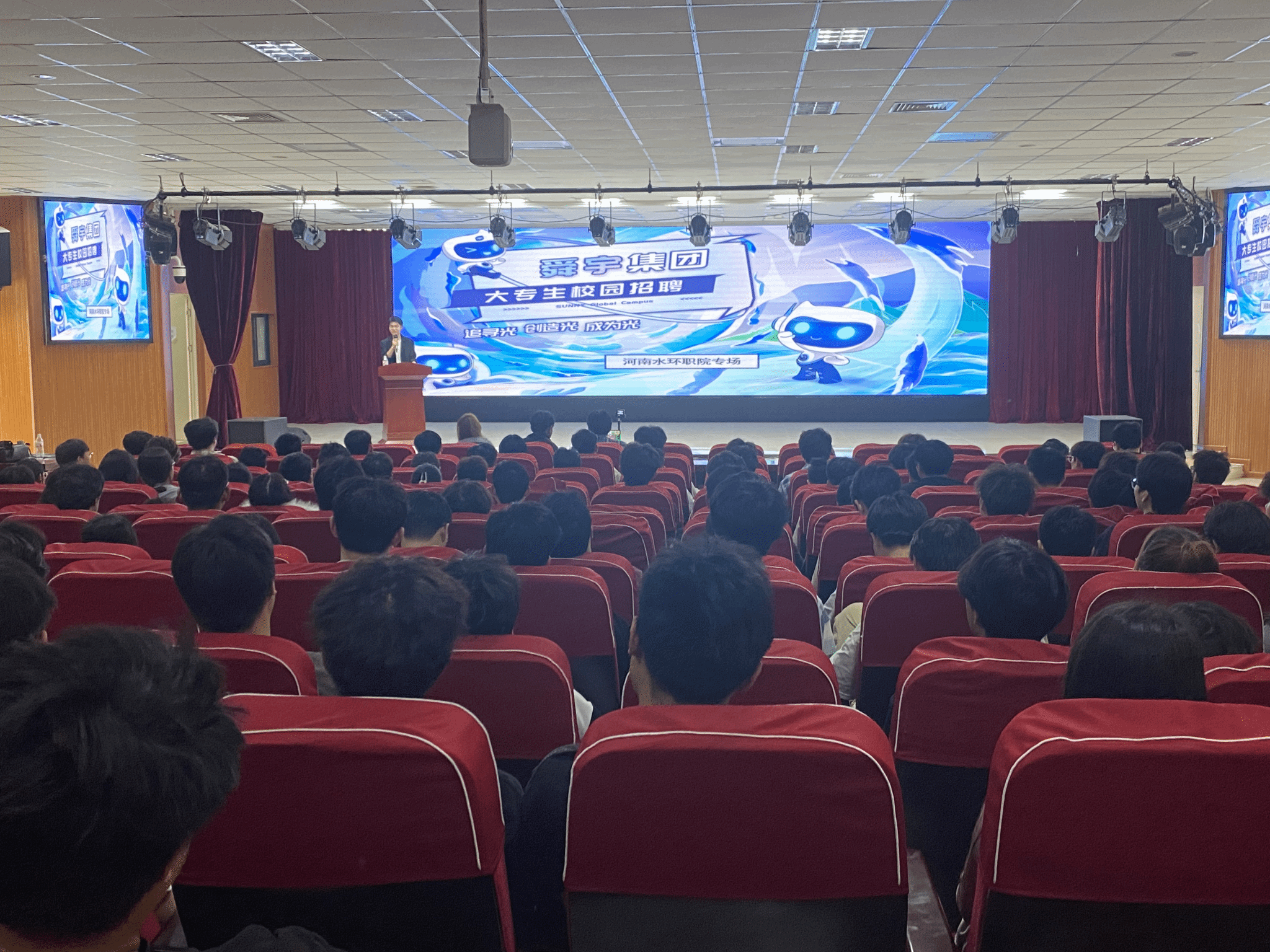 为深化产教融合,拓宽毕业生就业渠道,4月24日,水利工程学院与交通工程学院联合中国500强企业舜宇集团,在航空港校区德礼讲堂二楼成功举办专场招聘宣讲会,活动通过抖音平台线上同步直播,吸引了百余名2023级学生参与。
