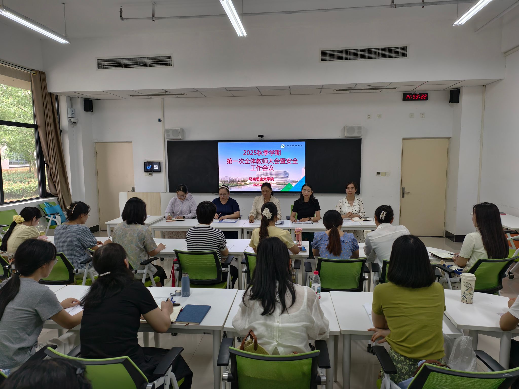 9月2日下午,马克思主义学院在航空港校区博思楼113室召开秋季学期第一次全体教师会议暨安全稳定工作会议,学院领导班子成员及全体教师参会,党总支书记王少娟主持会议。