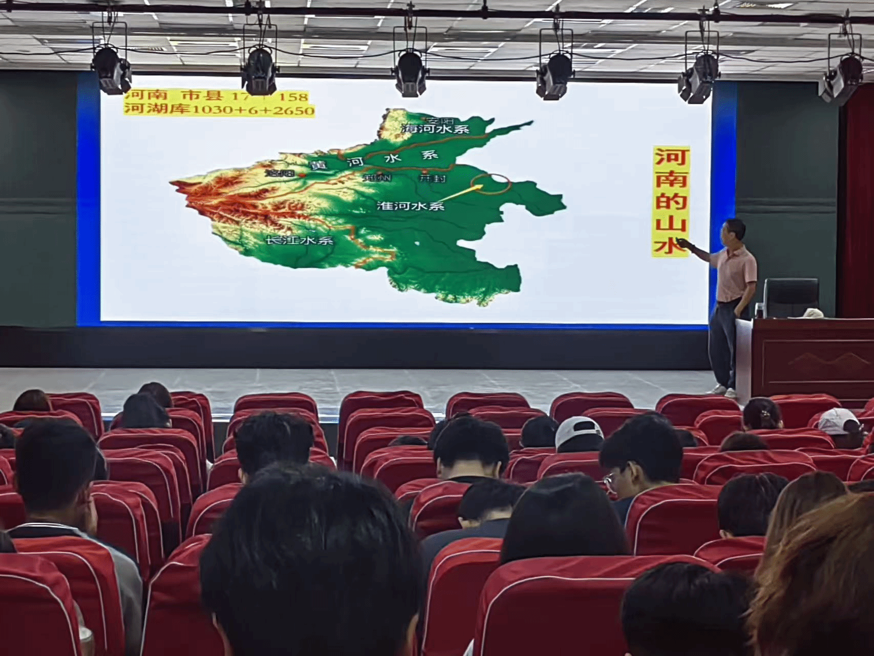 讲座系统梳理我国水利水资源发展历程与本专科教育体系,深入剖析生态文明建设背景下水事业的使命,并结合河南省情,重点介绍河南水系格局、河湖库资源分布特点,以及“八横六纵、四域贯通”现代水网规划。李贵宝教授指出,河南作为国家水网核心区,承担着保障京津冀供水安全、维护黄河淮河下游防洪安全的重要职责,亟需进一步加强水资源集约利用、水生态修复与水文化传承。