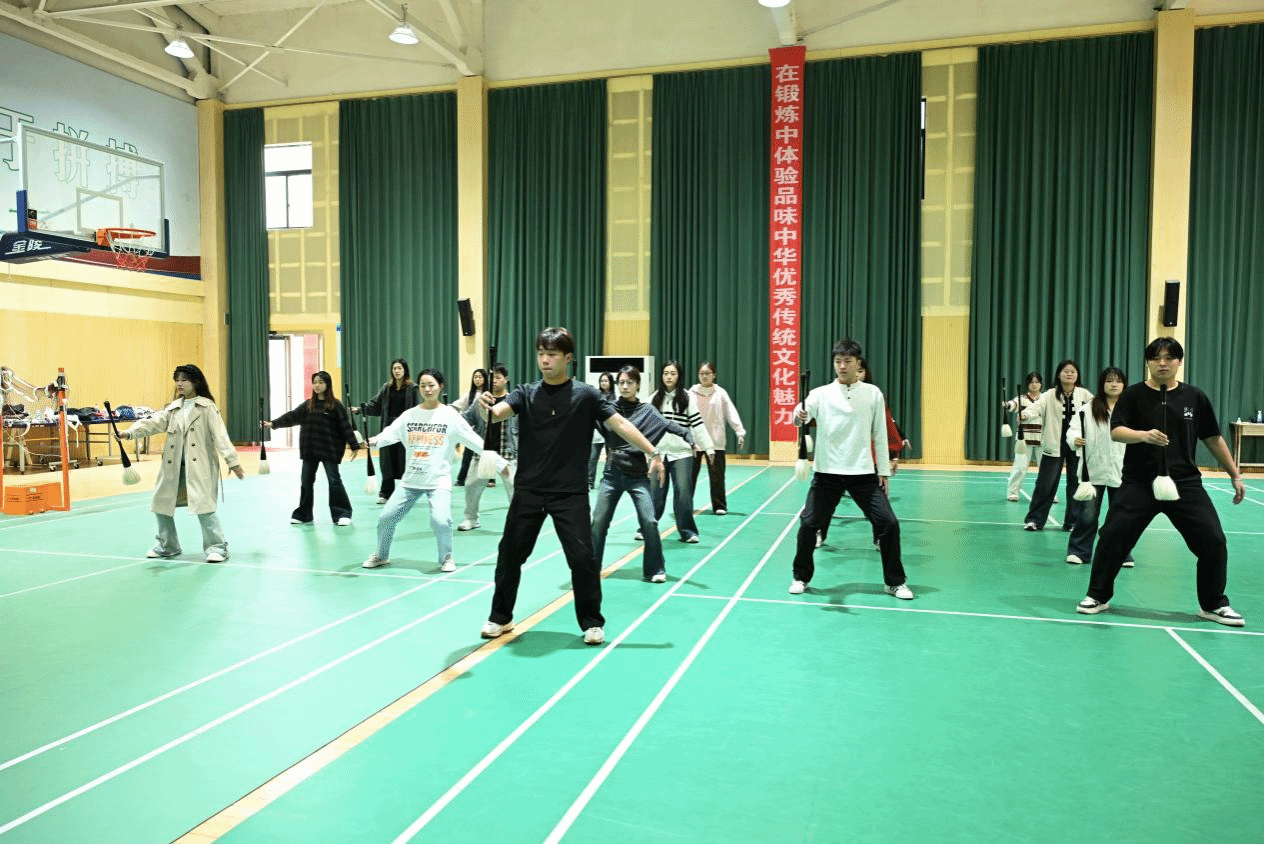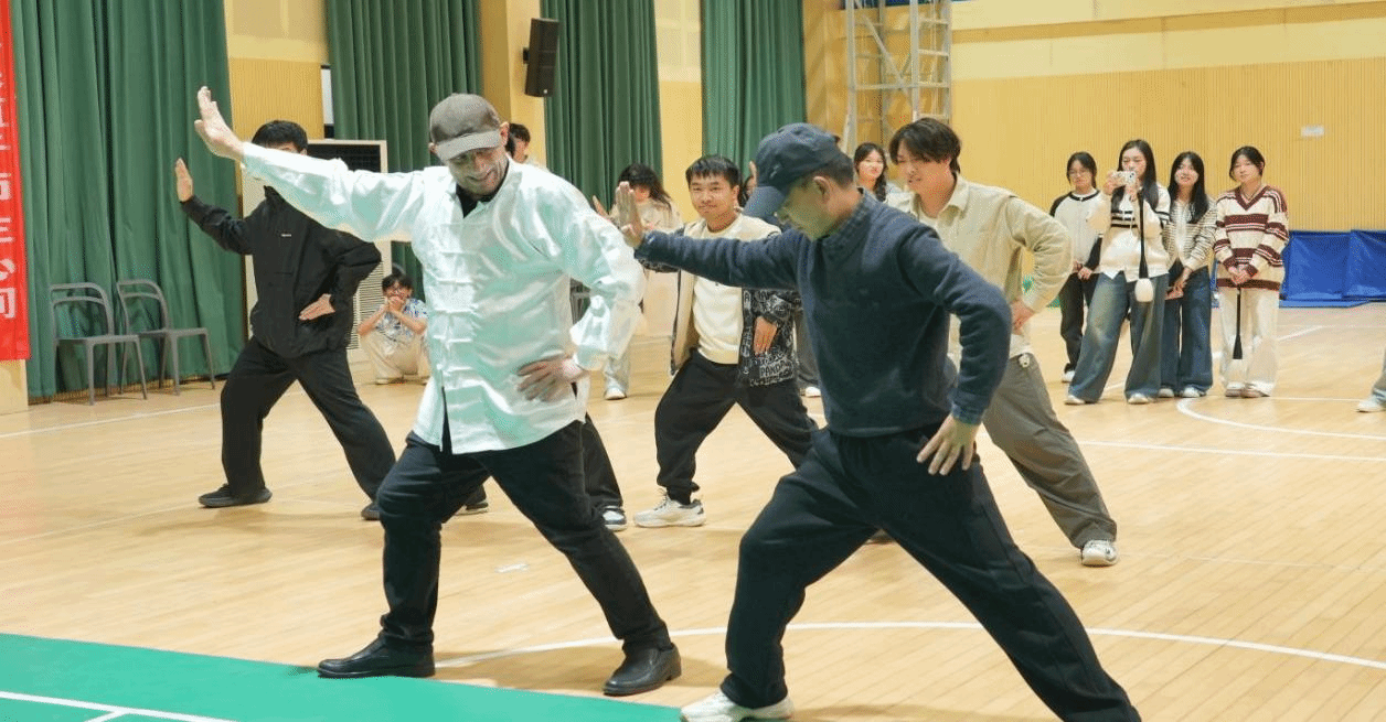 活动伊始,泰尔教授走进学校篮球馆,开启中国传统文化沉浸式体验。同学们精心呈现的“武术串烧”表演率先点燃氛围,刚劲有力的招式与灵动流畅的身形相得益彰,刚柔并济的演绎将中华武术的精气神展现得淋漓尽致,赢得泰尔教授阵阵掌声与连声赞叹。表演结束后,在体育教学部陈红岩老师的耐心指导下,泰尔教授饶有兴致地拜师学艺,从太极起势、云手到推手,一招一式认真揣摩、反复练习,在动静转换间亲身感悟太极“刚柔并济、内外兼修”的独特魅力。活动尾声,他由衷感谢师生们的热情接待与悉心指导,盛赞太极拳是“修养身心的绝佳运动”,并表示这段珍贵的文化体验将永远铭记。