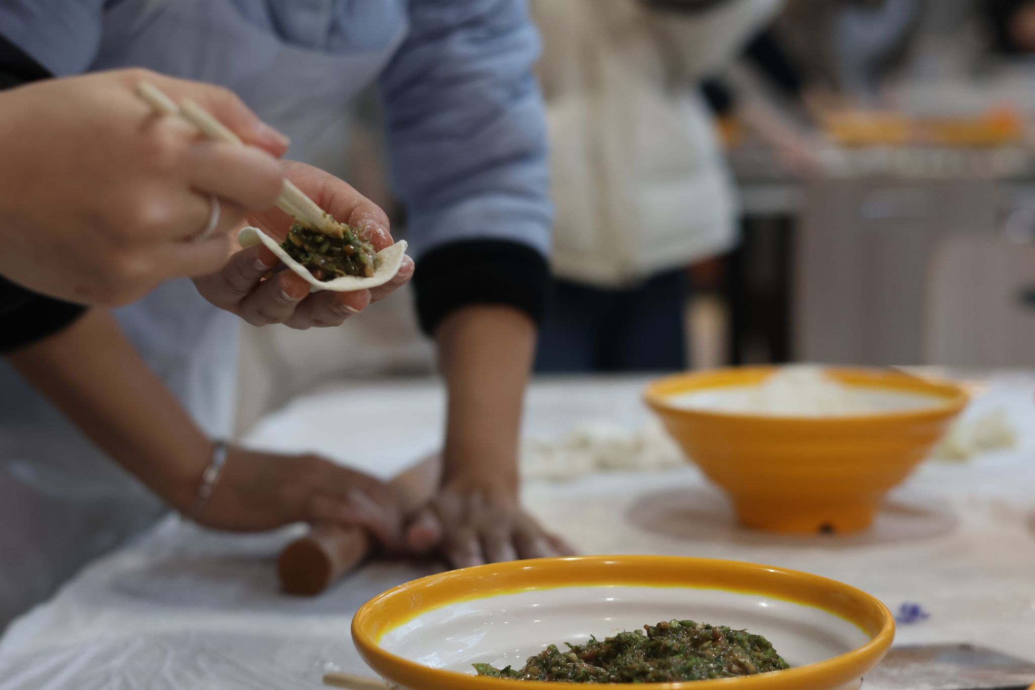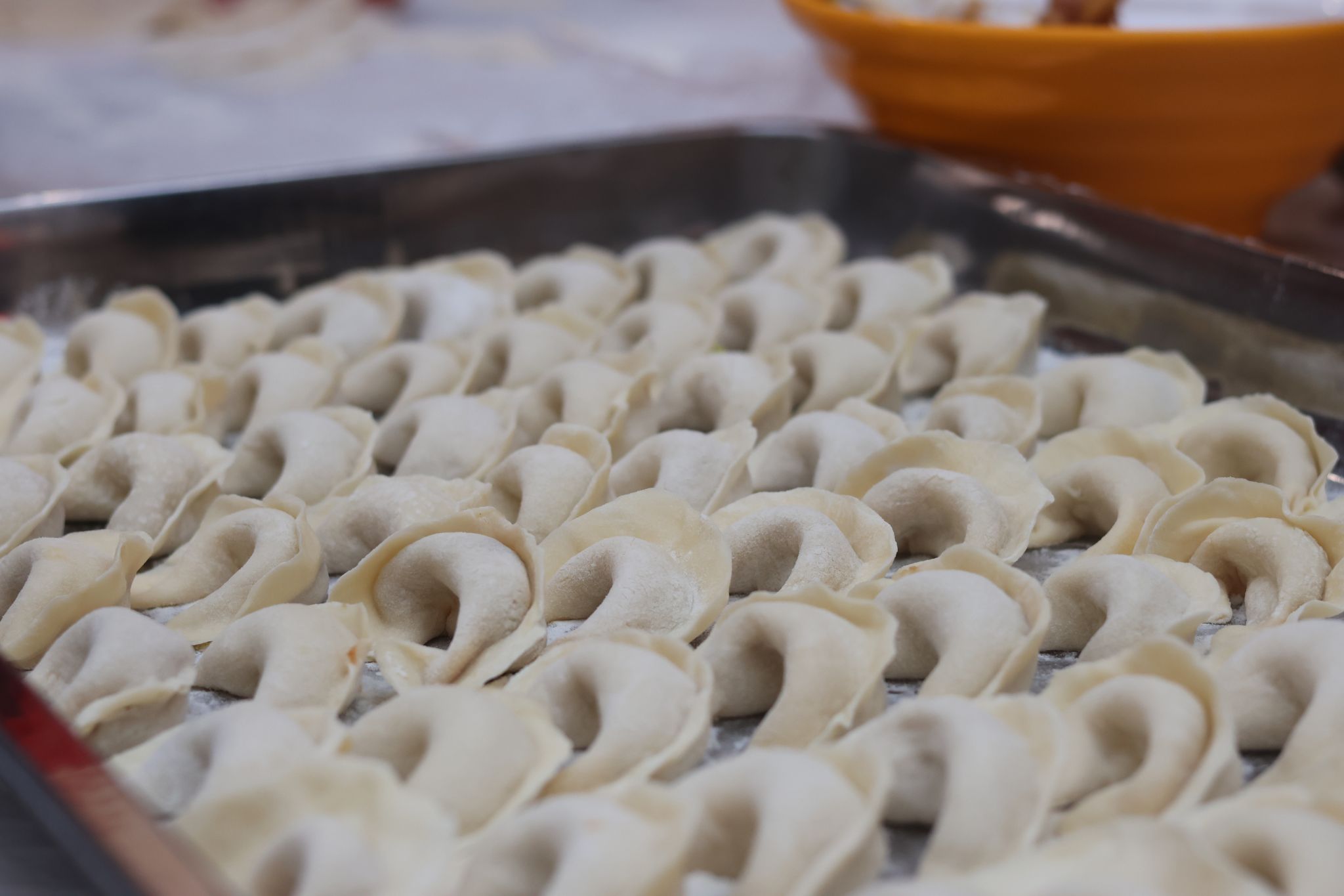 活动现场暖意融融,各类包饺子食材与工具摆放整齐。教职工们热情高涨、分工协作,有的揉面擀皮,手法娴熟;有的巧手捏制,创意十足,普通的饺子在大家手中变换出多样花样。欢声笑语间,一个个饱满圆润的饺子摆满托盘,鲜香气息四溢,浓浓的“家”味在校园里流淌。