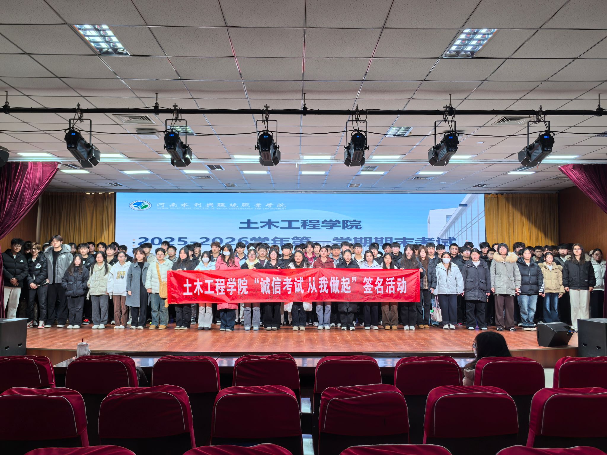 为营造公平公正考试环境,强化学生诚信应考意识,12月25日下午,土木工程学院在德礼1楼召开期末考试诚信教育工作会议,会议通过政策解读、案例警示、倡议宣誓等环节,为全院学生上了一堂深刻的诚信教育课。